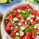 I like making this watermelon salad with feta, cucumber, and mint when I want something incredibly refreshing and hydrating. The juicy sweetness of watermelon combined with crisp cucumber, salty feta, and cool mint creates a light dish that feels perfect for warm days.