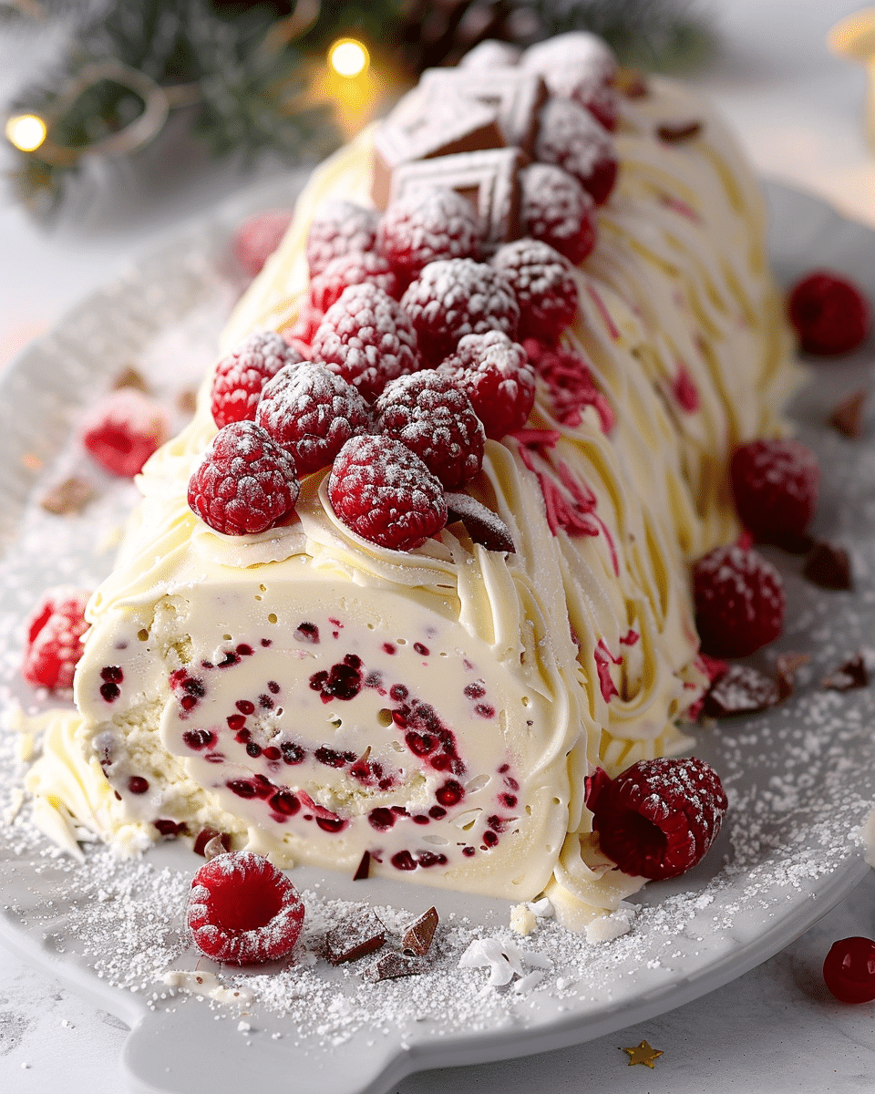 PrintWhite Chocolate Raspberry Yule Log Recipe