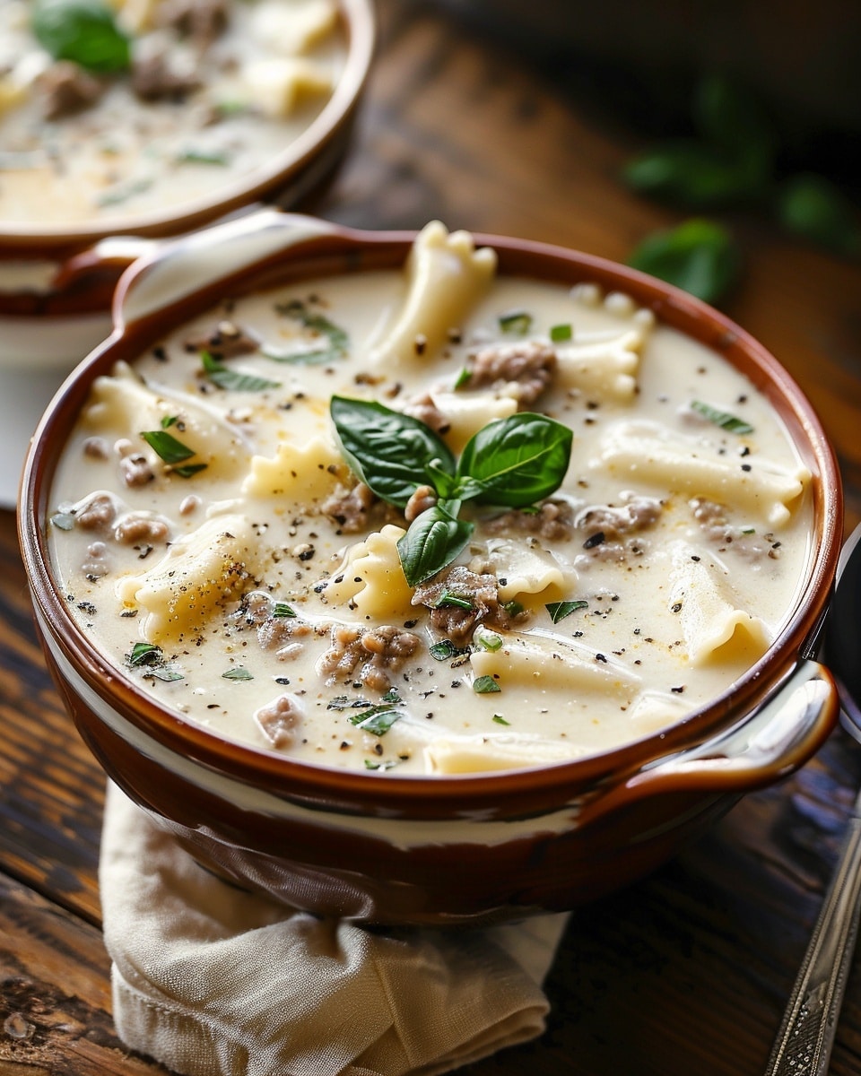 This creamy White Lasagna Soup is a cozy, comforting twist on classic lasagna. Made with chicken, pasta, spinach, and a rich cheesy broth, it’s hearty, flavorful, and ready in under 45 minutes—perfect for weeknight dinners or meal prep.