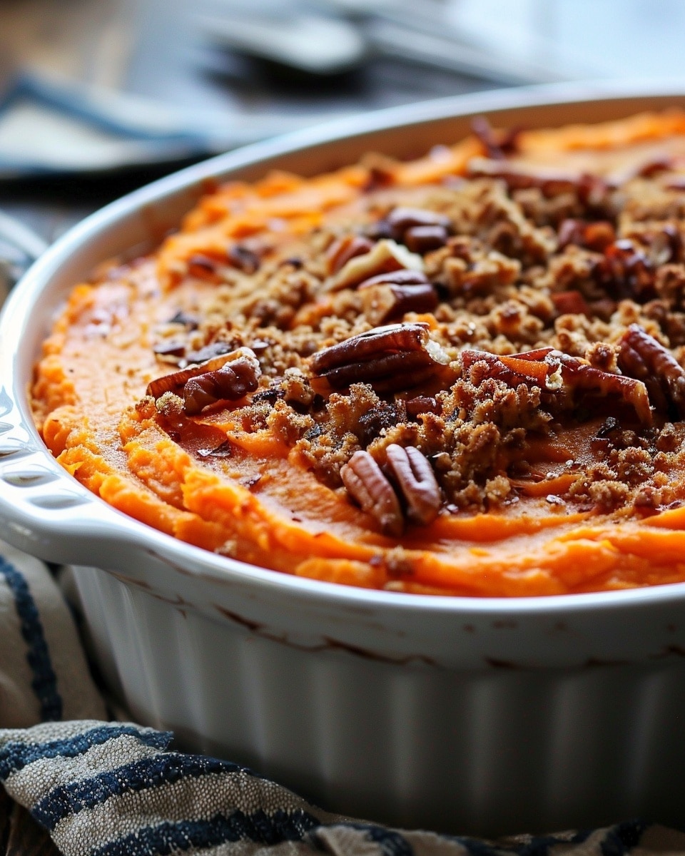 This Yummy Sweet Potato Casserole is a creamy, comforting side dish topped with a buttery, crunchy pecan streusel. Perfect for holiday dinners or cozy gatherings, it combines rich mashed sweet potatoes with warm spices and a sweet-savory topping. Always a crowd-pleaser and easy to make ahead!