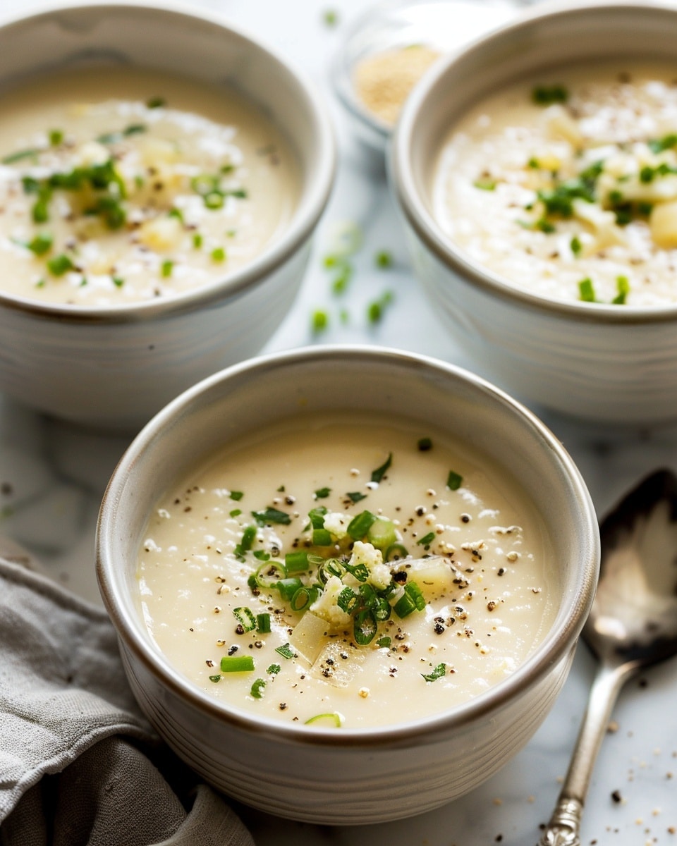 I love that this soup checks all the boxes: it’s healthy, filling, and surprisingly easy to make. The leeks and garlic lay down a rich, savory base, and the cauliflower blends into a luxuriously smooth texture without needing any cream. I make a big pot at the beginning of the week and reheat it for quick lunches or cozy dinners. It’s the kind of meal that makes me feel good from the inside out.