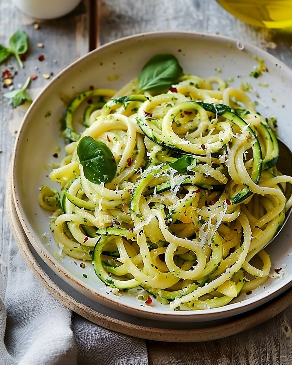 A light yet comforting pasta dish made with tender zucchini, garlic, and olive oil, finished with Parmesan and fresh herbs for a fresh, satisfying meal.