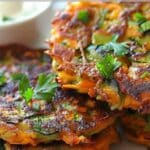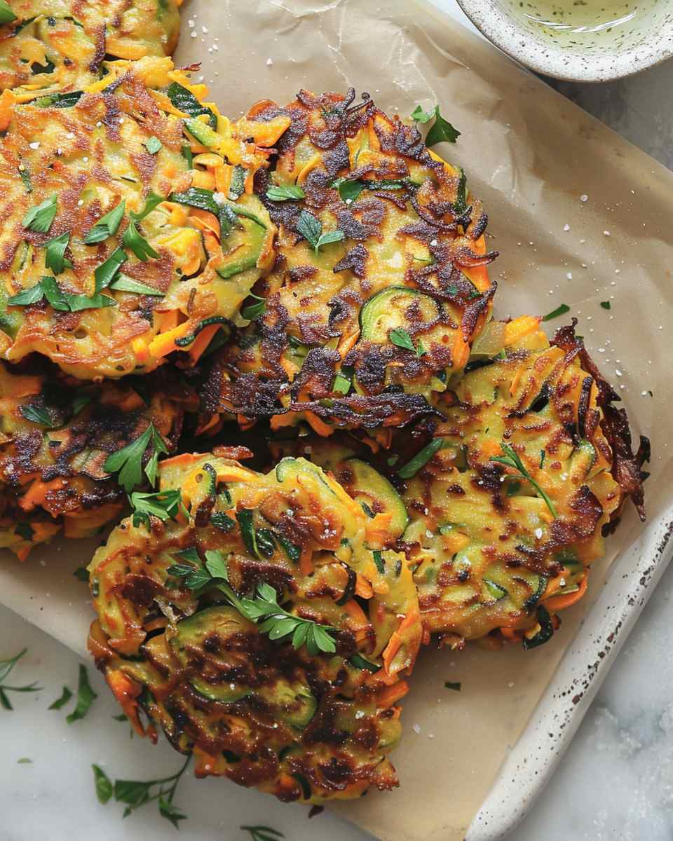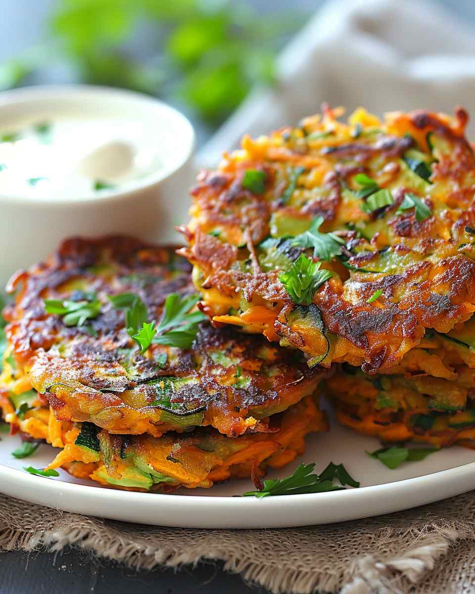 Crispy zucchini and sweet potato fritters with a tender interior, combining fresh vegetables into a simple and flavorful dish perfect as a snack, side, or light meal.